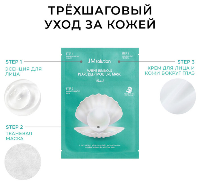 Совместные закупки Екатеринбург Косметика и парфюмерия Маски для лица — Маска трехшаговая увлажняющая для сияния кожи JMSOLUTION Marine Luminous Pearl M