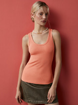 Женская майка в рубчик из трикотажа кашкорсе с округлым вырезом горловины  и открытыми проймами.  Горловина и проймы окантованы.