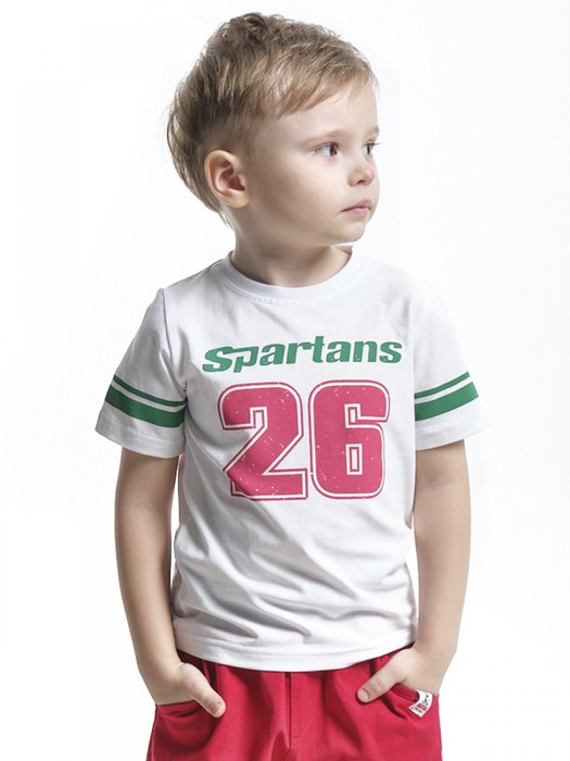 Совместные закупки Екатеринбург Детская одежда Футболки, майки — Mini Maxi Футболка д/м "Spartans 26" (98-122см) UD 0188-5(2) бел/зеленый