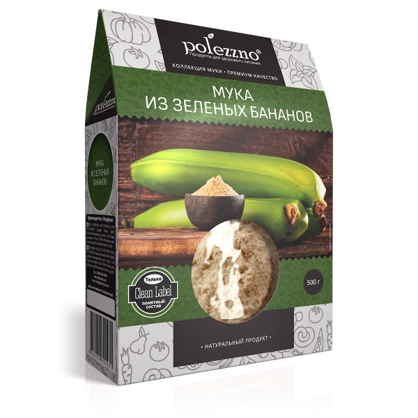 70–75 г банановой муки заменяют примерно 100 г пшеничной или рисовой муки. Используйте в выпечке, для приготовления мороженого, смузи, конфет и других изделий, где используется обычная мука.