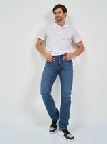 Мужские классические джинсы с пятью карманами. Посадка Regular fit (полуоблегающие по бедру), высокая талия, немного заужены к низу. Застежка на молнии.. Выполнены из слабоэластичной утепленной ткани denim comfort stretch, к изнаночной ткани прикреплена дополнительная трикотажная ткань (флис) с мягким, шелковистым и приятным на ощупь ворсом. Темная стирка с потёртостями только по швам. Параметры указаны для размера 32. Длина шагового шва для роста 32 - 80 см., для роста 34 - 85 см, для роста 36 - 90 см.