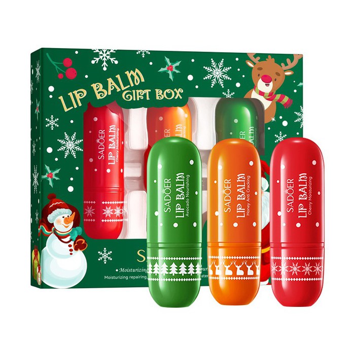 Совместные закупки Екатеринбург Косметика и парфюмерия Прочий макияж — Набор бальзамов для губ Новогодний SADOER, 3 штуки.