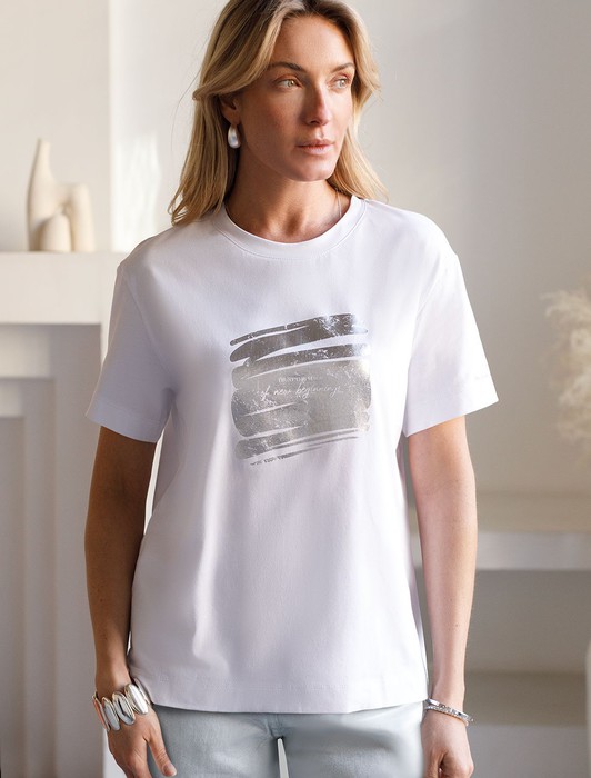 Совместные закупки Екатеринбург Женская одежда Футболки — Нарядная футболка с принтом фольгой из премиального хлопка с эластаном