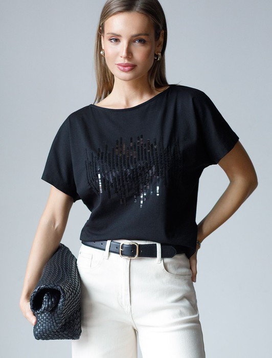 Совместные закупки Екатеринбург Женская одежда Футболки — Нарядная футболка с принтом пайетками
