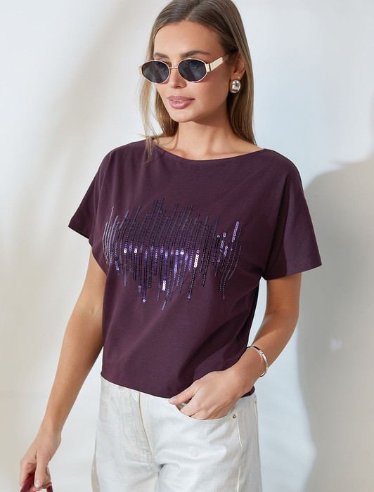 Совместные закупки Екатеринбург Женская одежда Футболки — Нарядная футболка с принтом пайетками