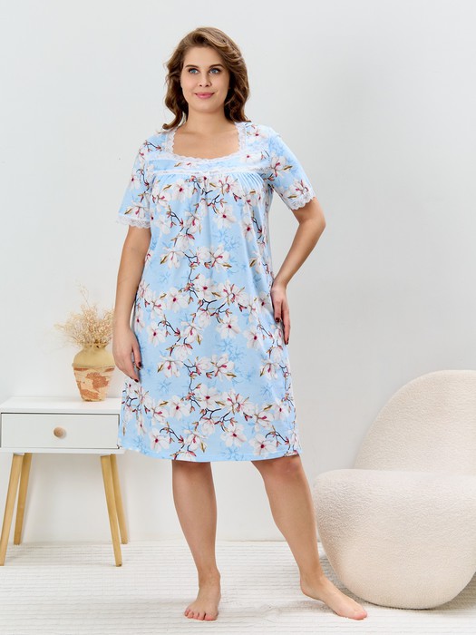 Совместные закупки Екатеринбург Женская одежда Пижамы, халаты — Ночная сорочка Узор-1 НС-634 ГОЛУБОЙ
