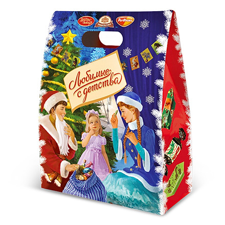 Удобный картонный сундучок с новогодним рисунком и самыми знаменитыми конфетами легендарных фабрик. Любимые с детства - прекрасный новогодний подарок не только для ребенка, но и для взрослого, как воспоминания о том, как в детстве ждали чуда, Деда Мороза и конфет.