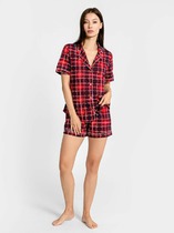 Заказать outlet46 eleganter Damen Pyjama Baumwoll-Shorty mit Satinbesatz kurzes Schlafanz