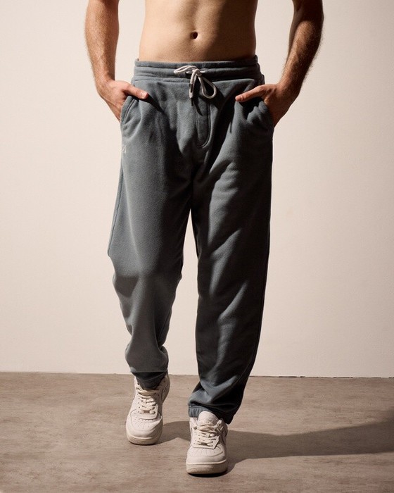 Мужские брюки, джоггеры с резинкой по низу брюк. Пояс из 2-х деталей, внутри резинка. По поясу отстрочка, петли,шнур. Боковые карманы с двойной отстрочкой, боковые швы отстрочены. Задний карман на правой задней половинке брюк.