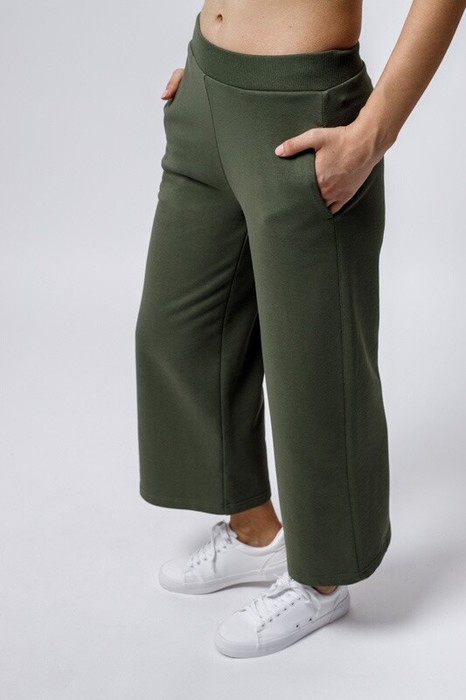 Кюлоты длиной семь восьмых. Карманы в боковых швах. Пояс из кашкорсе. Декор вышивка.