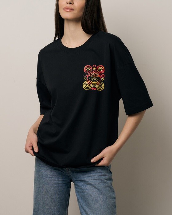 Футболка свободного силуэта. Горловина из рибаны.