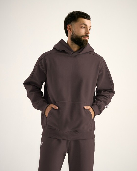 .Худи свободного кроя с капюшоном, спущенное плечо, карман кенгуру.