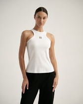 Майка из кашкорсе. Проймы и горловина окантованы, с переходом на короткую бретель