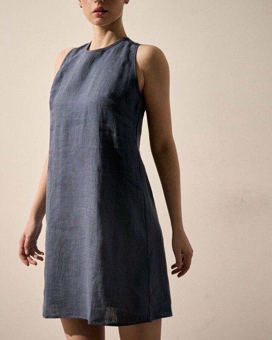 Платье короткое из льна .Шов на спинке.