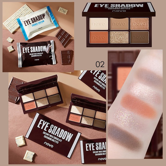 Палетка теней в виде шоколадки Novo, 6 цветов. НОМЕР 02