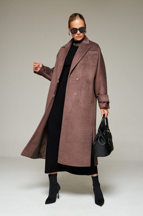 Пальто выполнено из шерстяной ткани, которая обеспечивает теплоизоляцию и защиту от ветра и влаги, подходит для межсезонья и теплой зимы. Двубортное, на подкладке. Изделие рассчитано на температурный режим от +10 до -5 градусов. Модель прямого силуэта актуального покроя «летучая мышь»; предназначена для повседневного использования.