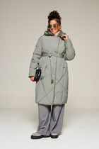 Капюшон съемный (на кнопках) умеренного объема. По периметру капюшона протянут шнур в цвет изделия с декоративными металлическими фиксаторами.