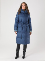 Утепленный плащ прямого силуэта  с ярким акцентом в виде контрастной отделки подходит для женщин и девушек разных возрастных категорий. Застежка - на двухзамковую молнию, что позволяет регулировать ширину шага. Воротник - стойка, переходящая в капюшон. Удобно расположенные карманы застегиваются на кнопку. Есть потайной карман на молнии. Длина втачного рукава регулируется отворотом. Плащевая ткань имеет водоотталкивающую пропитку,  которая выдержит небольшой  дождь  и ветер.  Подкладка в изделии выполнена из ткани в мелкую полоску.