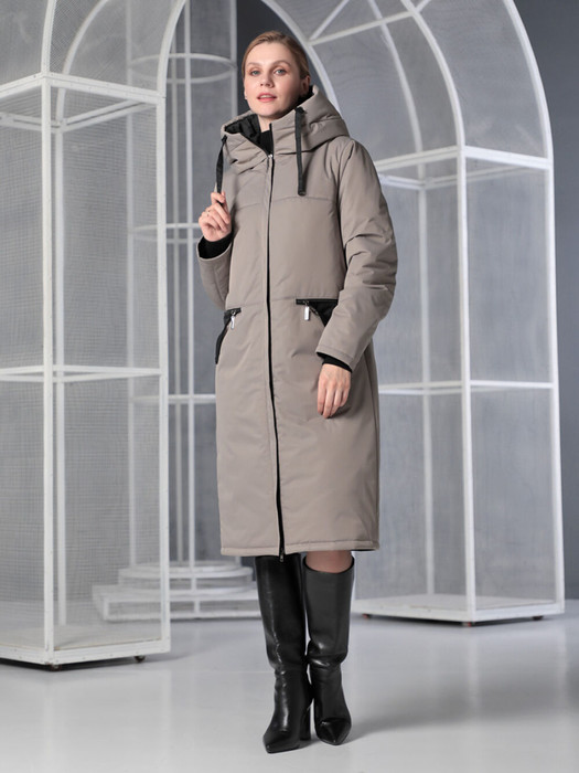 Осеннее пальто средней длины прямого силуэта. Застежка - на двухзамковую молнию, которая позволяет расстегнуть пальто как сверху, так и снизу, регулируя тем самым ширину шага по необходимости. Модель такого демисезонного пальто подходит для девушек и женщин разной возрастной категории, оно хорошо садится на любую фигуру. Прямой силуэт пальто можно скорректировать затяжкой по спинке. Воротник - уютная стойка, переходящая в большой стильный капюшон. Прорезные карманы с молнией можно эффектно расстегнуть, зафиксировав кнопкой. Есть внутренний кармашек на молнии. Низ втачного рукава оформлен трикотажной манжетой. Акцентная черная фурнитура выгодно усиливает стильность данной модели. Плащевая ткань, из которой выполнено изделие, имеет водоотталкивающую пропитку, выдерживающую небольшой дождь, снег и ветер. Хорошо зарекомендовавший себя утеплитель "Холлофайбер", плотностью 200гр/м, защитит от холода. Подкладка в изделии выполнена из ткани черного цвета.