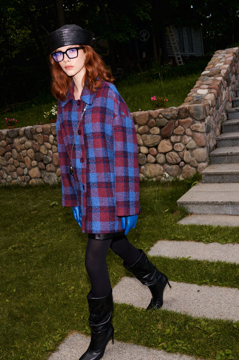 Пальто Lokka 1454 синий+бордо+клетка