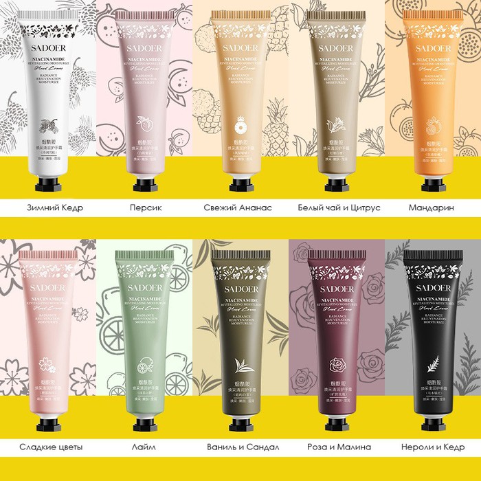 Крем для рук с разными ароматами интенсивно увлажняет и питает кожу.Крема вкусно пахнут, быстро смягчают и увлажняют кожу рук, хорошо впитываются.Не оставляет липкой плёнки.Обеспечивает антиоксидантную защиту, питание, увлажненность, защищает от сухости.Продлевает молодость и красоту вашей кожи.