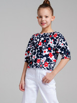 Стильная рубашка для ярких и уверенных в себе девчонок. Рукав декорирован объемным воланом, визуально корректирует фигуру и делает осанку более открытой. Под воротничком проходит черно-белая репсовая лента со сверкающей стразами пряжкой, которую при желании можно снять и оставить более сдержанный образ. Объем изделия по линии талии немного увеличен, чтобы блузу было удобно заправлять в брюки или юбку.