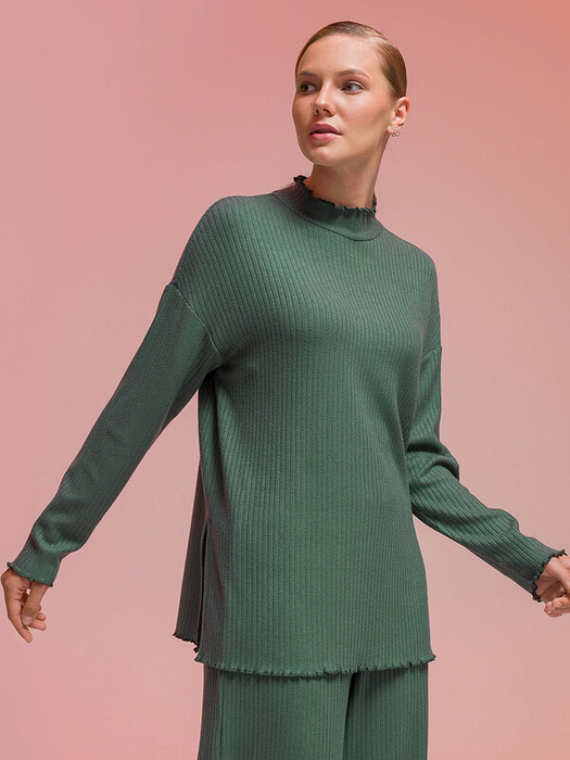 Женский джемпер из актуальной ткани в рубчик большого объема. Свободный лонгслив со спущенным плечом подарит вам ощущение комфорта и уюта. Джемпер с воротником-стойкой из кашкорсе. Он защитит шею от холода и ветра — не нужно дополнительно надевать шарф. Стильный джемпер оверсайз-силуэта с разрезом сбоку — один из трендов сезона. Отделка «салатный край» придаёт изделию утончённости и женственности. За ним просто ухаживать. Джемпер однотонный, без принта. В составе ткани преобладает мягкая вискоза — модель качественная, дышащая, приятная на ощупь. Благодаря полиэстеру, нейлону и эластану джемпер износостойкий, не боится частых стирок, не линяет, держит форму. Лонгслив выполнен в элегантном зелёном цвете. В линейке представлены следующие размеры: XS (42); S (44); M (46); L (48); XL (50). Джемпер подходит и женщинам, и девушкам, и девочкам-подросткам. Джемперы такого фасона легко комбинировать с брюками, джинсами, легинсами. Лонгслив идеален для работы, учёбы, отдыха, а также для дома. Его можно носить осенью и весной (демисезон), зимой, в прохладную погоду летом. Джемпер в рубчик — отличный подарок для мамы, сестры или близкой подруги на любой праздник или просто в качестве знака внимания и заботы.