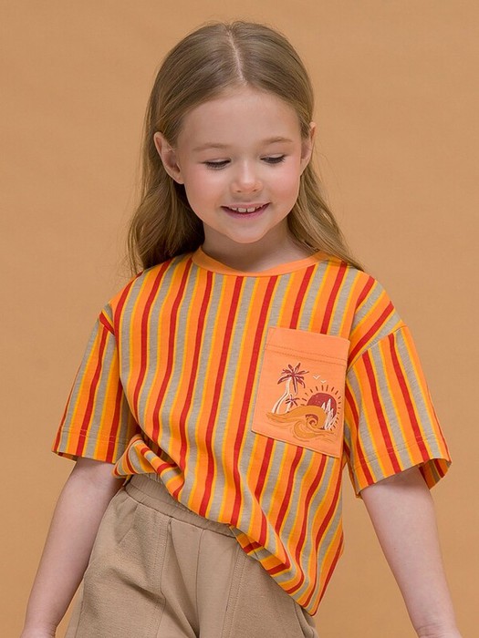 Футболка оверсайз принтованная в полоску для девочки. 100% хлопок в составе – ткань мягкая, дышащая, приятная на ощупь. Накладной карман с принтом – яркий визуальный акцент и изюминка модели. Футболка отлично подходит для создания стильного образа весной и летом в паре со слоучами или шортами. Идеальна для активного детства – на каждый день, для учебы и занятия спортом.