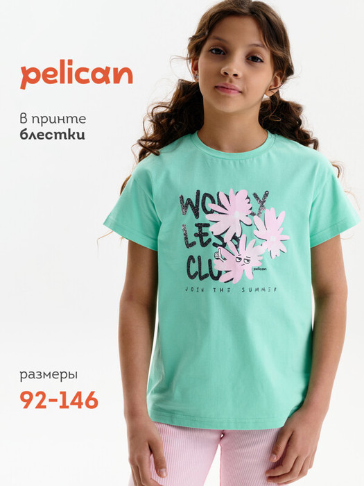 Совместные закупки Екатеринбург Детская одежда Футболки, майки — Pelican Футболка для девочек GFT3389/2 Ментол