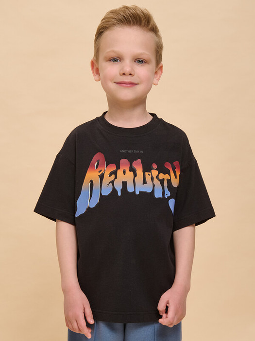 Детская футболка для мальчика. Комфортная майка трендового супероверсайз объёма со спущенным плечом не будет стеснять движений ребёнка. Вырез горловины обработан эластичной рибаной (ткань в рубчик) — она прекрасно держит форму, не растягивается, при этом ребёнку удобно надевать и снимать футболку. Изделие неприхотливо в уходе. Футболка детская с принтом в актуальном готическом стиле по переду и спинке. Надпись переводится: «ещё один день в реальности». Принт эластичный и прочный, не боится частых стирок. В составе ткани 100% хлопка — майка мягкая, дышащая, приятная на ощупь. Футболка для мальчиков выполнена в универсальном цвете, её легко комбинировать с различными брюками, шортами. Детские футболки с принтом подходят как для маленьких мальчиков, так и для подростков. Оверсайз-футболка для мальчика подходит для любого времени года, её можно носить как летом, так и в холодное время года в качестве среднего слоя одежды. Помните о правильном уходе за изделием: рекомендуется стирать при температуре не выше 30 °C, без предварительного замачивания, с изнанки. Это поможет сохранить качество и цвет футболки на длительное время.