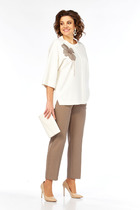 Комплект женский свитшот и брюки. Свободный расслабленный объем. Укорочённый свитшот со стильными широкими манжетами из рибаны. Суперстойкий центральный моно принт с добавлением золота и цветных термостраз. Шрифтовой rubber принт выполнен золотым металликом. Перевод Что ж, никто не совершенен. Прямые свободные брюки с контрастными трикотажными лампасами с люрексом. Карманы в боковых швах.