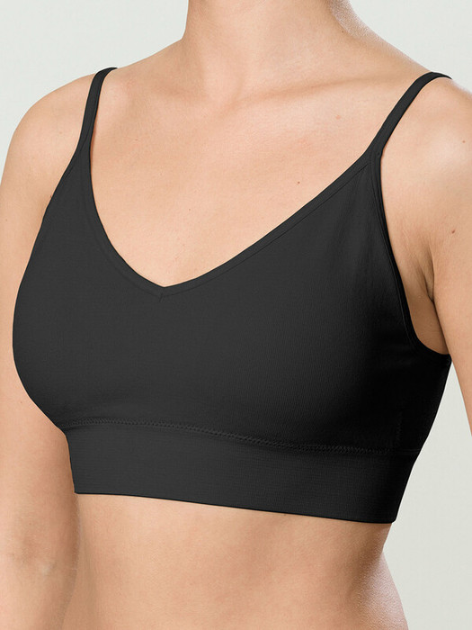 Бесшовный топ-бра из премиальной микрофибры в рубчик для женщин.  Тонкие бретели с регулировкой не спадают при носке, широкая резинки 3,5 см под грудью не сдавливает, не впивается, овальный вырез по спинке красиво подчеркивает спину.  Съемные формованные чашки поддерживают грудь и создают красивый объем. Микрофибра не мнется, не требует глажки, не впитывает запах и пот. Добавьте в комплект трусы танга с высокой посадкой или классические трусы-слипы из микрофибры. Стильная, современная модель для женщин, которые ценят комфорт, удобство и функциональность в одежде.