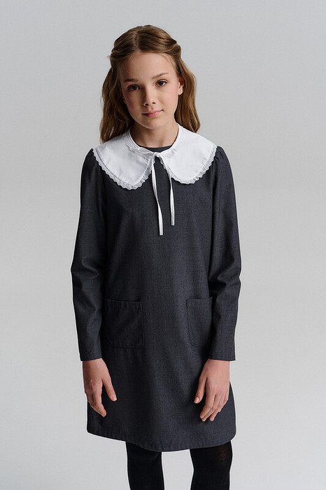Лаконичный дизайн, продуманный крой и съёмный декоративный воротник — модель, которая подойдёт и для школы, и для повседневной носки после уроков.