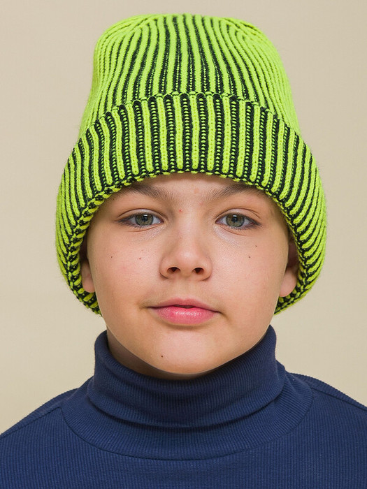 Стильная шапка с отворотом для модных мальчиков и девочек! Шапка из 100% акрила — мягкого, тёплого и эластичного. Изделия из акрила легко стирать, они не мнутся, не растягиваются, сохраняют отличный внешний вид надолго. Прекрасные терморегулирующие свойства акрила позволяют шапке сохранять тепло при низких температурах. Подкладка из флиса приятна на ощупь и обеспечивает дополнительную защиту от холода. Шапка связана фактурной английской резинкой в актуальном контрастном сочетании жёлтого и чёрного цветов. Шапка плотно прилегает к голове ребёнка, не сползает, защищает уши от ветра и холода.  Яркая шапка – отличный выбор для ребёнка! В ней вы никогда не потеряете его в многолюдных местах, увидите своё чадо издалека!