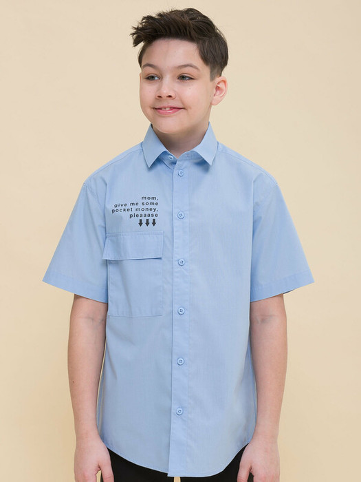 Школьная рубашка свободного силуэта для мальчика. В составе ткани преобладает хлопок — модель мягкая, приятная на ощупь и пропускает воздух. Полиэстер помогает не терять форму и превосходный внешний вид. По спинке кокетка с двумя защипами для свободы движения. Накладной карман с клапаном — актуальный модный тренд. Над карманом изделие украшает забавный принт, мягкий и устойчивый к частым стиркам. Перевод: «Мама, положи в мой карман деньги, пожааалуйста». Рубашка отлично сочетается с различными брюками, пиджаками, жилетами и подходит мальчикам с разными типами фигуры. Модный и практичный вариант школьной сорочки для мальчика.
