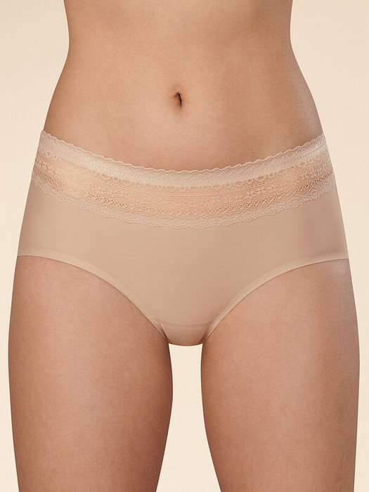 Женские трусы-шорты со средней посадкой. Изготовлены по бесшовной технологии с минимум швов. Кромки по ноге и по талии подогнуты и приклеены, хлопковая приклеенная ластовица. Нежное геометричное кружево по линии талии высотой 5 см – не передавливает тело и не натирает кожу. Модель оценят те, кто ищет незаметное и невесомое белье на каждый день или особого случая.