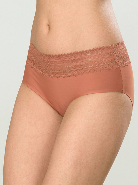 Женские трусы-шорты со средней посадкой. Изготовлены по бесшовной технологии с минимум швов. Кромки по ноге и по талии подогнуты и приклеены, хлопковая приклеенная ластовица. Нежное геометричное кружево по линии талии высотой 5 см – не передавливает тело и не натирает кожу. Модель оценят те, кто ищет незаметное и невесомое белье на каждый день или особого случая.