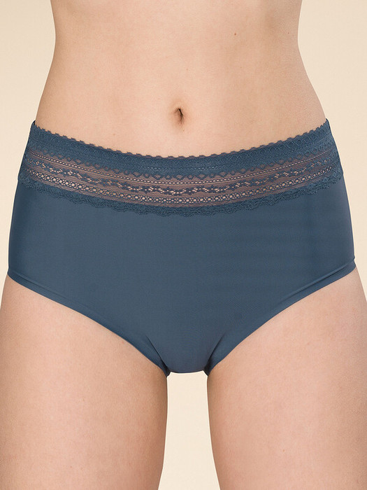 Женские трусы-шорты с высокой посадкой. Изготовлены по бесшовной технологии с минимум швов. Кромки по ноге и по талии подогнуты и приклеены, хлопковая приклеенная ластовица.  Нежное геометричное кружево по линии талии высотой 5 см – не передавливает тело и не натирает кожу.  Модель оценят те, кто ищет незаметное и невесомое белье на каждый день или особого случая.