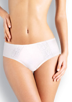 Женские трусики-слипы с низкой посадкой из мягкого нежного кружева для любительниц романтики. Трусики оценят те, кто ищет незаметное и невесомое белье. По линии талии геометричный эластик, декорированный атласными бантиками – не трет, не жмет, не давит. Рисунок кружева отражает тренд на ретро.