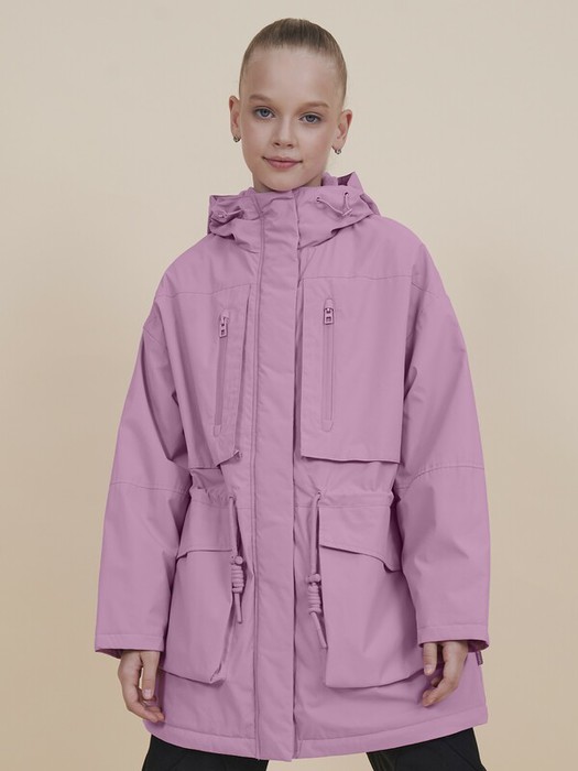 Парка для девочки с температурным режимом не ниже +5°С прямого свободного силуэта. Мягкий оверсайз. Ветровка на флисовом подкладе (верх переда и спинки, подклад капюшона из флиса, а нижняя часть переда и спинки и подкладка рукава из 100% POLY + синтепон 40г/м2 ). Мембранная ткань хорошо защищает нижние слои одежды от намокания. Структура мембранной ткани позволяет коже дышать - ребенок легко двигается и не переохлаждается. Изделие сохраняет первоначальный внешний вид даже при активной носке. Водоотталкивающая пропитка или DWR (Durable Water Repellent) – «устойчивое водоотталкивающее покрытие» - защищает от промокания под дождем: материал не утяжеляется под воздействием влаги, позволяя свободно пропускать воздух. Низ рукава прямой, внутри рукава расположена скрытая манжета из мягкой эластичной ткани.