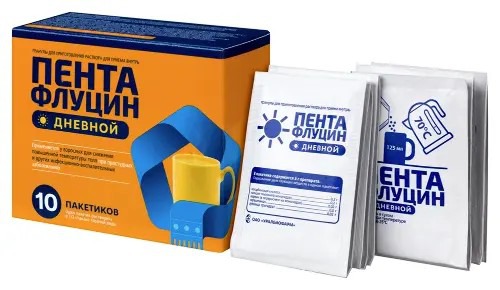 02.26.#Розничная цена от 240. Пентафлуцин дневной применяется у взрослых для симптоматического лечения острых респираторных заболеваний (ОРЗ) и острых респираторных вирусных инфекций (ОРВИ), сопровождающихся высокой температурой, ознобом, головной и мышечной болью.