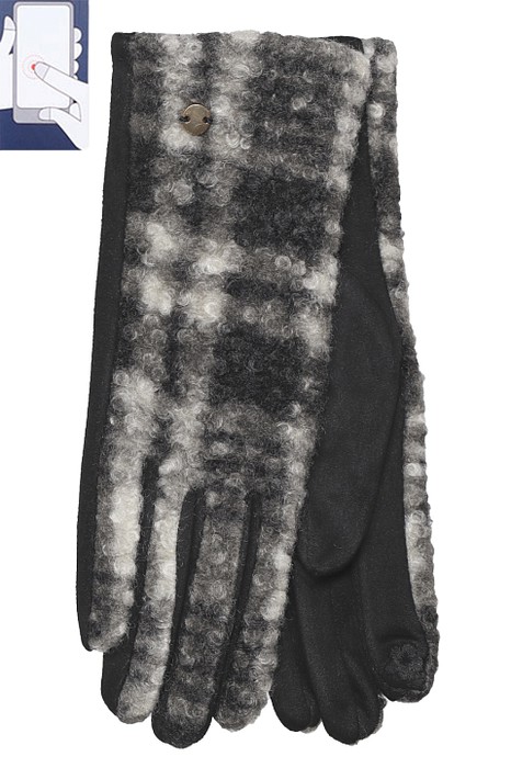Подклад: Велюр Тип изделия: Перчатки Состав: Иск. замша Место: П4-2-К2Перчатки сенсорные (нашивка на кончике указательного пальца). Комбинированные: ладонь иск.замша на велюровой основе, сверху - плотная, мягкая ткань "букле".