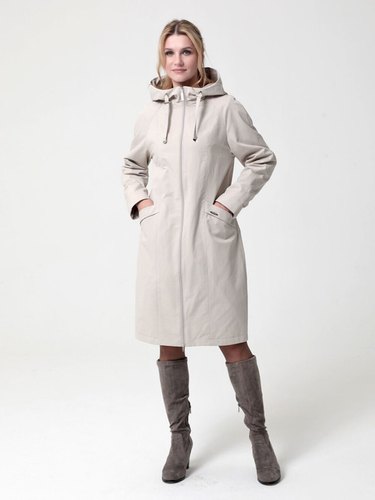 Укороченный плащ прямого силуэта с рукавами покроя реглан и застежкой на двухзамковую молнию, позволяющую регулировать ширину шага, подходит для девушек и женщин разного возраста. Воротник - стойка, переходящая в капюшон. Вместительные карманы удобно расположены между рельефных швов. Есть внутренний кармашек на молнии. Силуэт плаща можно менять с помощью затяжек по линии талии (со стороны спинки) и по линии низа. Подкладка в изделии выполнена из ткани в мелкую полоску. Этот весенний плащ из хлопкосодержащей ткани с водоотталкивающей пропиткой хорошо садится на любую фигуру. Добавьте яркости в аксессуарах, и Ваша весна будет комфортной и стильной!