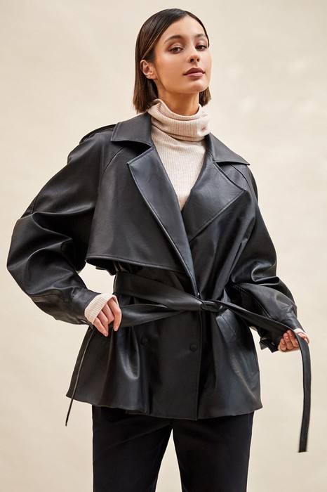Тренч укороченный из экокожи: