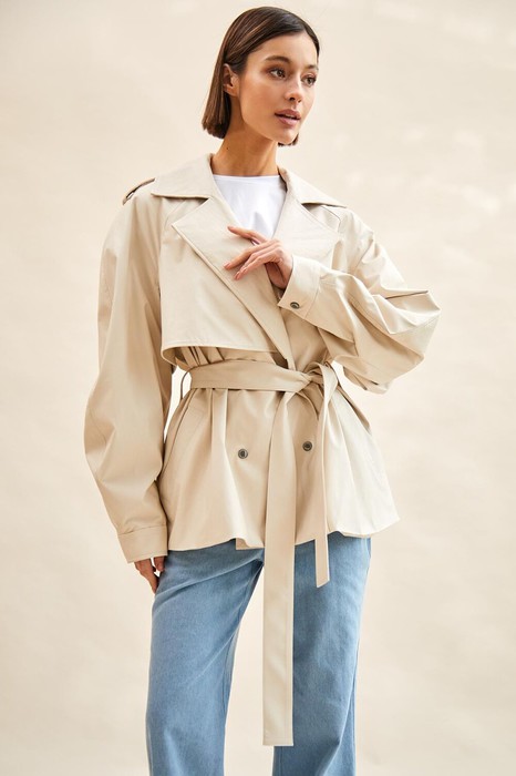 Тренч укороченный из экокожи: