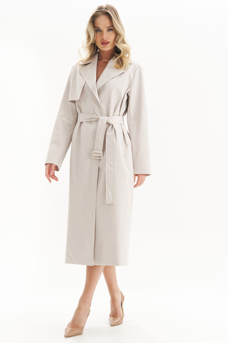 Этот стильный тренч — воплощение утонченного стиля и современной женственности. Его свободный силуэт с поясом выгодно подчеркивает талию, а лаконичный крой делает его универсальным элементом гардероба. Носите его в паре с классическими лодочками для элегантного образа или сочетайте с джинсами и кроссовками для повседневной элегантности. Незаменимый вариант для стильных и уверенных в себе женщин!
