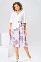 Платье Х-образного силуэта, без рукава, с округлой горловиной, с карманами. Платье отрезное по линии талии. Юбка со складками по линии талии. На спинке обработан декоративный вырез. Горловина, проймы, края выреза спинки, вход в карман обработаны бейкой контрастного цвета