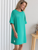 Vilatte Платье из премиального хлопка с вышивкой на рукаве D42.090 лазурный