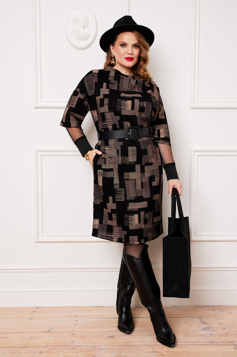 Стильное женское платье прямого силуэта, выполнено из высококачественной трикотажной ткани с модным дизайнерским принтом (ткань мягкая, приятная к телу, хорошо тянется). Горловина хомут, рукав спущенный, с отделкой из сетки с манжетой из трикотажного довяза, в боковых швах функциональные карманы. В комплекте идет съемный кожаный пояс. Модель стильная и практичная, невероятно стройнит, прекрасно подойдет для ежедневной носки, вы будете выглядеть неотразимо.