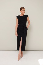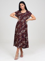 Элегантное нарядное платье, выполнено из роскошной струящейся плательной ткани с добавлением вискозы. Платье с имитацией запаха по переду, отрезное по линии талии. В боковом шве платья потайная молния застежка. Рукав цельнокроеный, спущенный, длиной до локтя. Спинка платья отрезная по талии, с резинкой. В комплекте идет съемный пояс, декорированный пришивным украшением, с резинкой и застежкой на пуговицы в цвет платья. Модель удобная и практичная, вы будете в нем выглядеть неотразимо и нарядно.